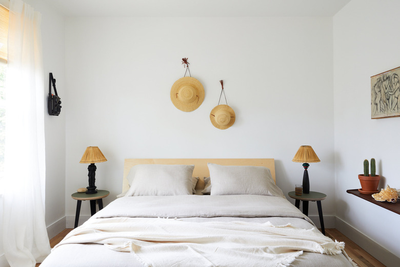 A boho beach vibe is bright, airy, and, well, fairly minimal. For a clean bedroom makeover, simply paint your walls white, throw in some neutral bed linens, and finish the look with rattan details, a few seashells, and a couple of trusty woven hats as wall decor.
