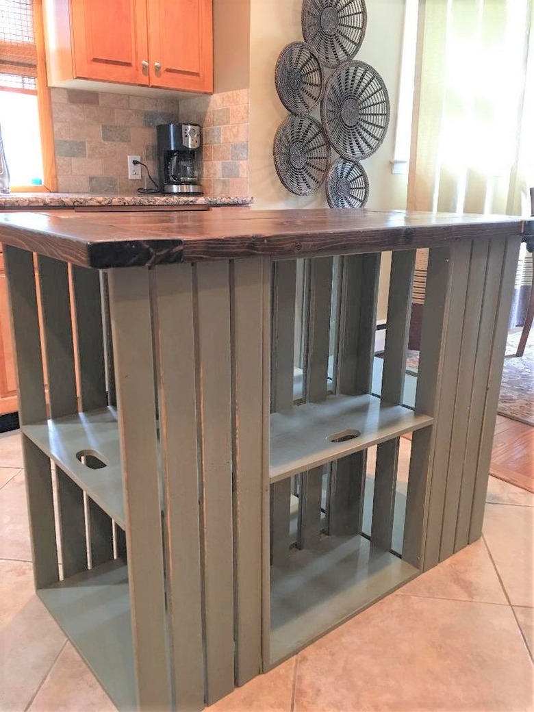 Just as with wood pallets, crates are inexpensive and often free if you're lucky. While this kitchen island by Erick Perez on Custom Made screams farmhouse, yours need not if that's not your style. Other possibilities would be painting the crates a darker color and using a cement or steel countertop for a more modern look.