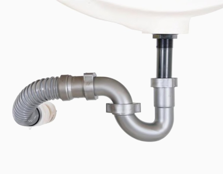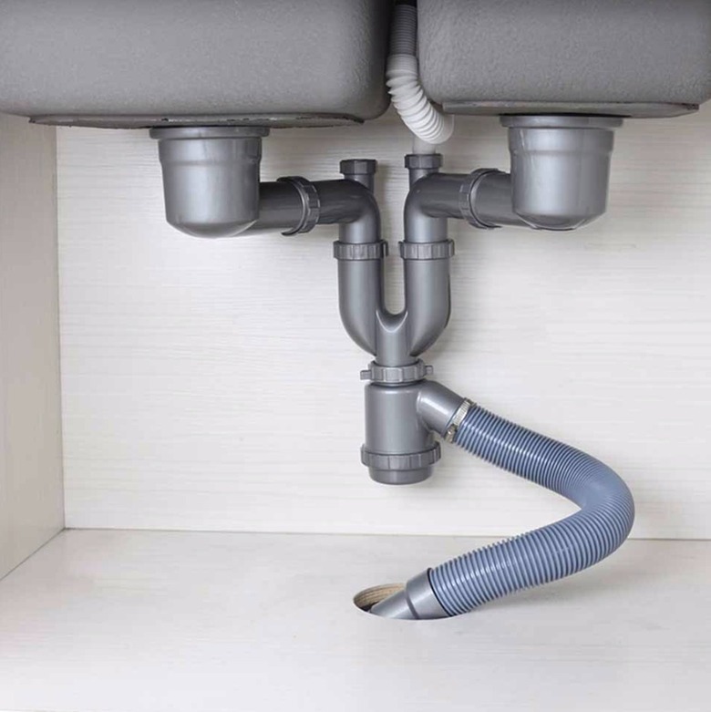 A P-trap is an essential part of your kitchen drain because every plumbing fixture in the home is required to have one. The name is a little misleading, though, because the piece is actually U-shaped. Designed to stay full of water, it creates a seal that prevents dangerous sewer gas from escaping the pipes and entering your home.