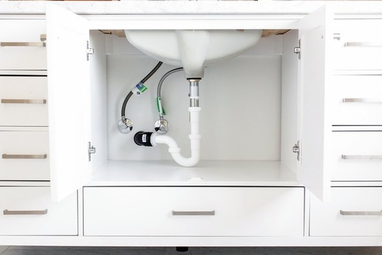 Locate the drain pipe stubbed into the cabinet. If it is a PVC variety and comes out through the wall, cut it to the required length. This will allow your P-trap to be directly below the tailpiece or waste tee. You can cut the pipe with a hacksaw or specialized PVC saw or cable saw. If the pipe coming out of the wall is too short, glue a 1 1/2-inch coupling on by first cleaning it with PVC cleaner and then swabbing it with PVC cement.