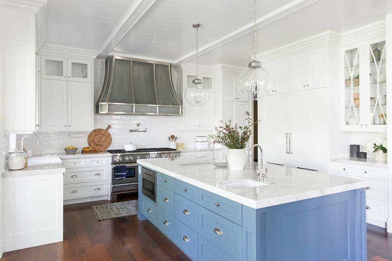 Blue is considered a timeless color, so don't be afraid to use it in your kitchen, even if it is just at the island. Studio McGee lifted the look of this classic all-white design with a pop of color, proving that traditional can look modern, too.