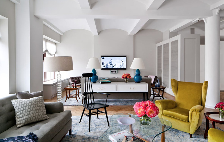 When your living room doubles as the recreation zone, you might have to get creative to maximize the space. Install your TV on a pull-out shelf like this one in this design from Chango & Co. That way you can point the screen where you want it, when you want it.