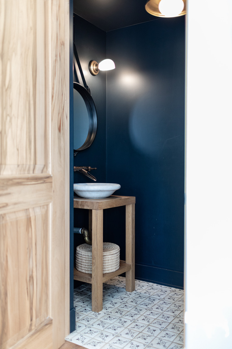 - Paint the vanity a new color, such as a deep espresso or even robin-egg blue.