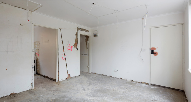 Yee installed a mix of closed cabinets and open shelving in the living room, which is separated from the bedroom by a pocket door.
