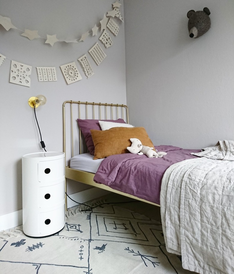 Keeping a minimalist girl bedroom in order won't be easy. But you can at least make it a little easier on your eyes by opting for a neutral color palette on the walls. Chalky white, sophisticated gray, taupe, soft pink and sage green are all muted color choices that will act as a base for any other louder accessories your little one might have in mind. Ashley of Sugar & Cloth opted for a calming white.