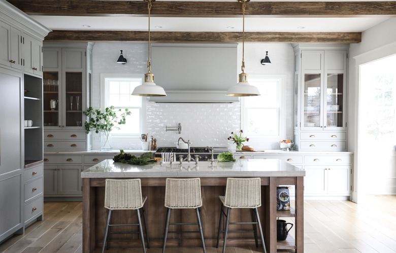 Your kitchen island seating can also help you integrate rustic elements into the design scheme. So don't leave it down to the wire to pick your perfect stools. The interior design team at Park and Oak opted for woven counter stools that add warmth to the traditional cabinetry.