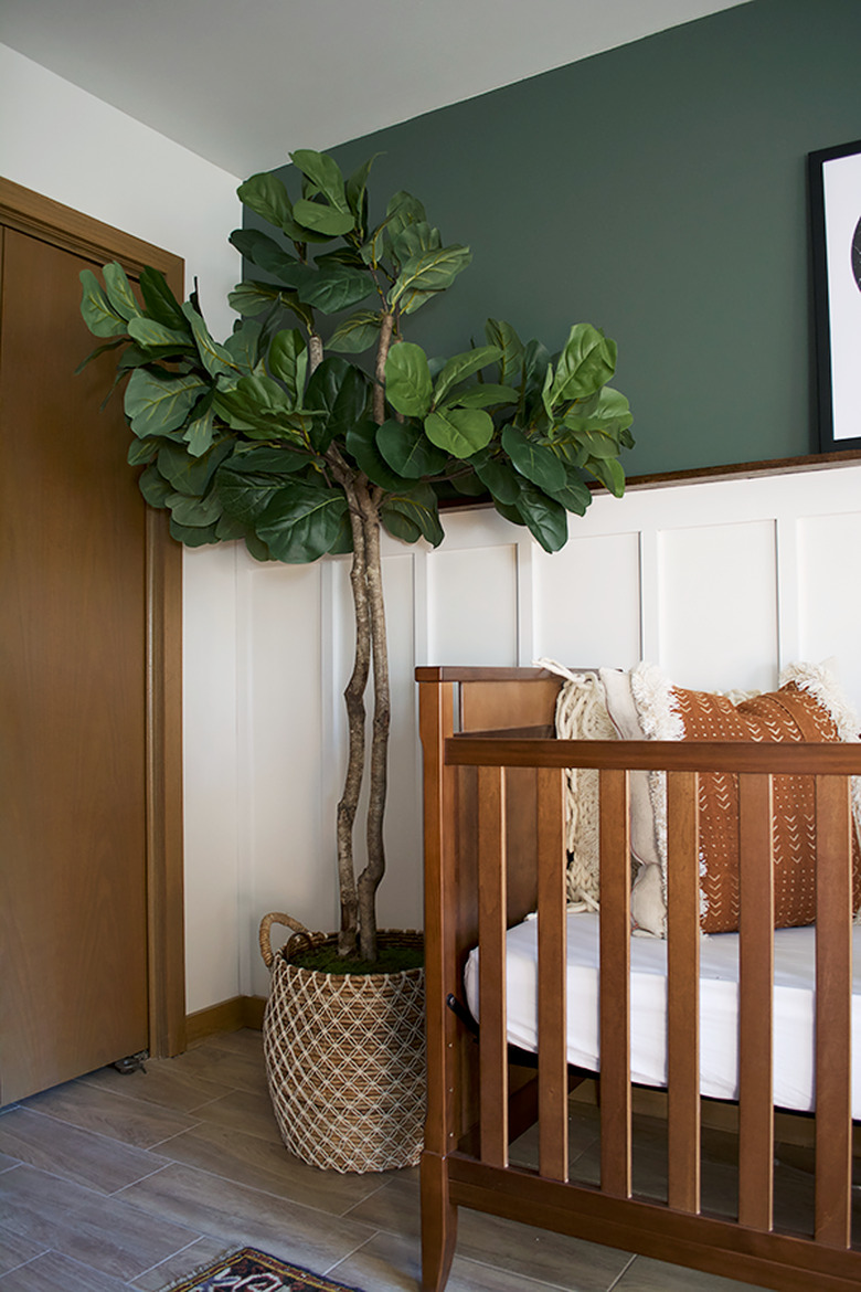 When Bre of Brepurposed created this green nursery, she didn't forget the most important piece of decor in any boho space: plants. In this case, the fiddle leaf fig is faux (but it sure fooled us!). We suggest either faux, real, or a combination of both to reinforce the verdant color palette.