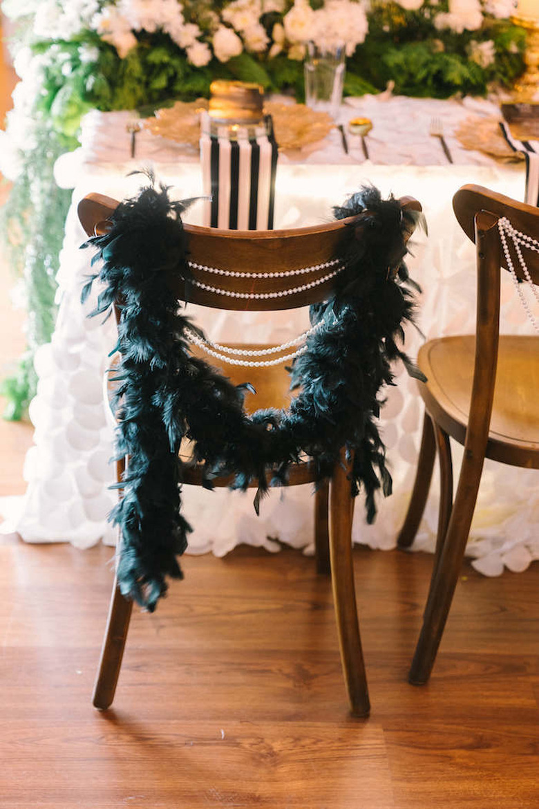 Black and gold are as classic a pairing as any but when it comes to art deco themed party ideas, they're at the top of the list. Go all out with the duo, designating it for everything from the dress code to the decor, or employ subtle hints of it — as seen here on Kara's Party Ideas — by way of a decked out tablescape. Complete the opulent look by draping black feather boas and faux pearls over chair backs.