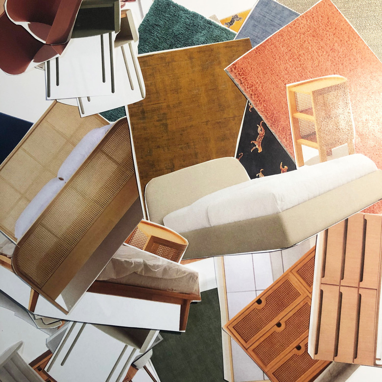 "I tend to gravitate towards neutrals and pinks, so my first move was to select a rug that would look good with those hues. I also love a good cane or rattan accent piece but felt like it worked best as the bed. Many of the nightstands were fab, but I ended up going with the pink since they're neutral enough, but still added a pop of fun color. Finally the dresser: I honestly felt like all of them would go with my selects, so I just went with the one that seemed the largest (I have a lot of clothes)."