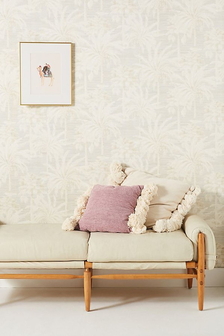 Prefer your neutral wallpaper with a little more oomph? This cream-colored wallpaper boasts a textured palm tree print that will liven up even the most minimalist of bedrooms.