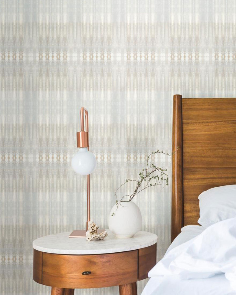 Few wallpapers pack more boho charm than earth-toned patterned ones. This soft gray and sand-colored wallpaper features a subtle geometric design that supplies plenty of bohemian charm.