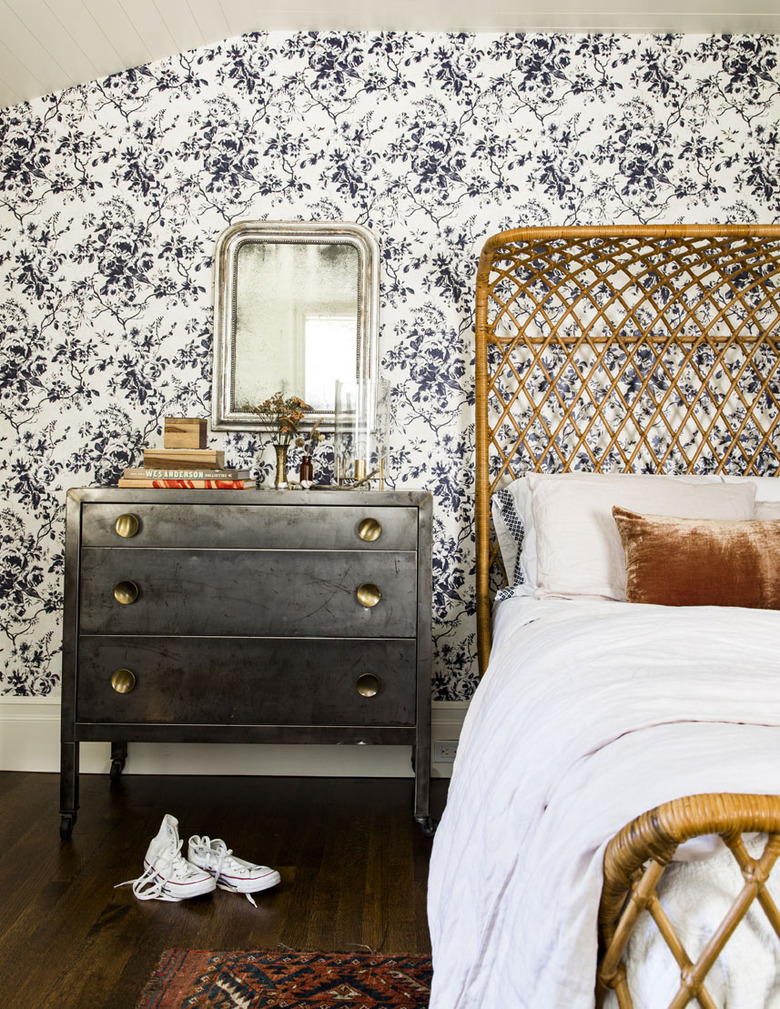 Love the look of printed wallpaper but aren't sure if it'll mesh with your boho-inspired bedroom? This vintage-inspired floral peel-and-stick wallpaper is bold but folksy at the same time.