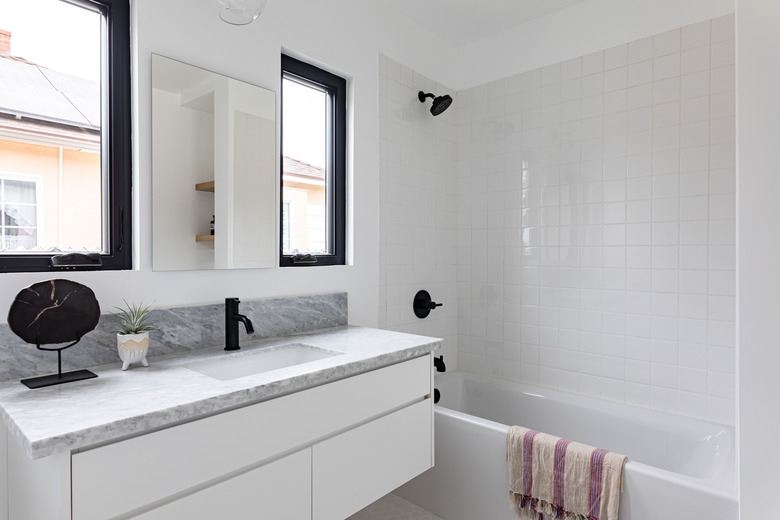 Ideally, you should aim for the nearest outlet location to make the vent for your bathroom exhaust fan as short as possible. If the bathroom has an external wall, that wall is usually the best choice, and if it's difficult to access, the roof over the fan is a good second choice for bathrooms on upper floors. A side wall is your only choice for first-floor and basement bathrooms, and if you have the option, aim for a wall on the side of the house rather than in front or in back.