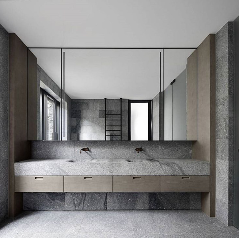 Many people think of granite when they think of counters. It's a popular choice in kitchens, but many homeowners want it in the bathroom too. There are lots of reasons granite makes a good choice for a bathroom vanity. Granite is a hard, highly heat-resistant natural stone that occurs in a huge variety of colors. The material has beautiful striations and a distinctive look.