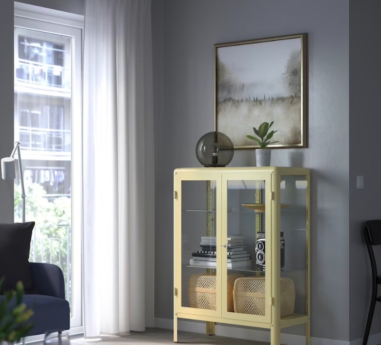 IKEA's Fabrikör cabinet is a favorite of design enthusiasts. Not only does the glass cabinet come in a variety of hues (navy, gray, white, black, and pale yellow and green), but it has two size options — either a single tower or the double-wide, as seen above (although we'd argue the double is a better value as both models cost the same at $169). This makes it an ideal setting for so many useful applications in your home — ranging from the purely aesthetic (Star Wars collectibles case) to the highly functional (extra bathroom storage). Here are all the ways people put the Fabrikör to use in their homes: