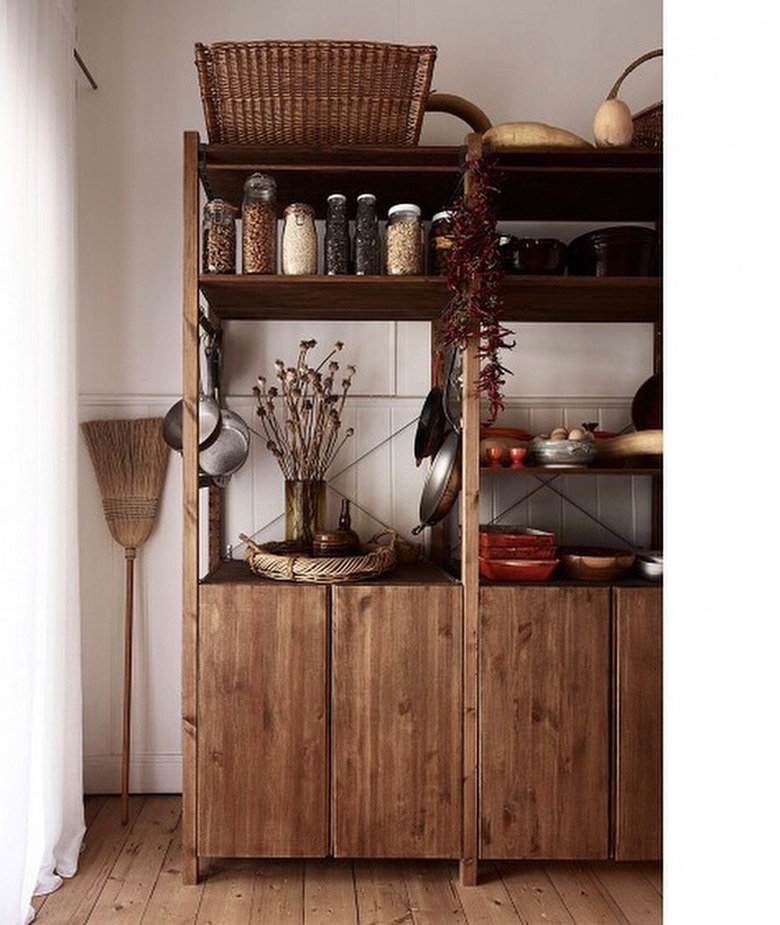 11. A dark stain on a more complex Ivar shelving unit feels totally farmhouse chic.