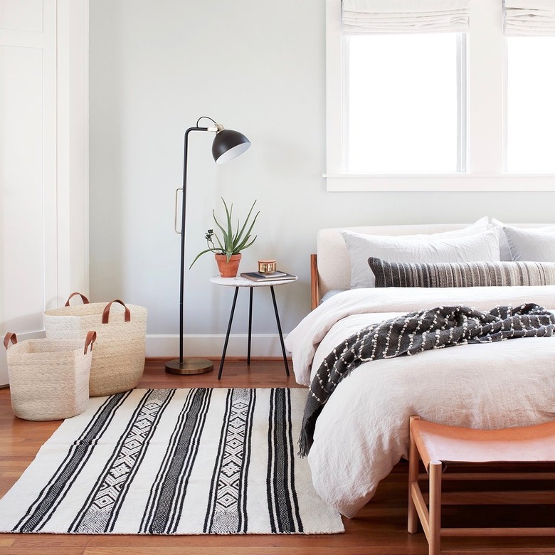 Some find bold colors, especially cherry red, too stimulating to use in a boudoir, but a maximalist bedroom like this one makes a pretty compelling case to reconsider. After all, red is the color of passion and according to the principles of feng shui brings luck. So, go ahead and daringly combine paisley print wallpaper, cobalt blue trim, and a handful of floral accessories for a look that's uniquely you.