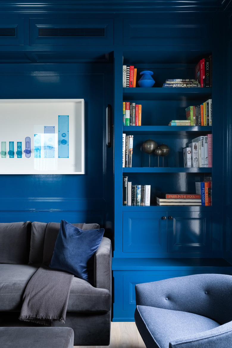 If you're going to experiment with rich blue paint colors, don't hold back. Take Chango & Co.'s lead and heavy up on the hue with a dark jewel-tone finish and then designate it for the walls, furniture, and even the decor. In fact, it's arguably one of the few colors on the spectrum that you can do that with and it won't feel like a staged art exhibit. Just keep your palette reserved to three or four tones for a cohesive tone-on-tone finish.