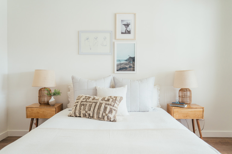 We occasionally like to keep it simple — both in life and decor. And that's why sleek white palettes are really unbeatable when it comes to choosing calming colors for your space. They create the perfect blank slate. And when paired with midcentury modern wood furniture in a bedroom, white shades will add a breath of fresh air that you'll never want to leave.