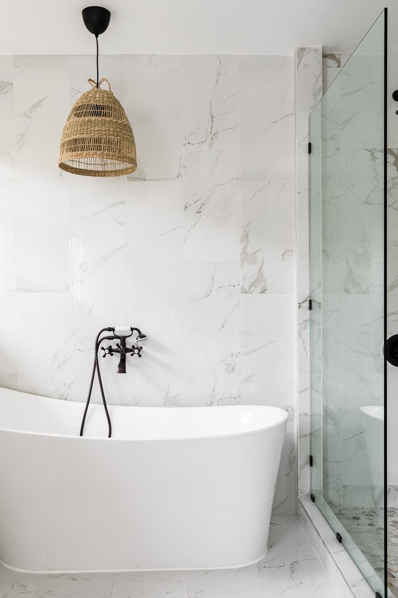 If you want to make a bold statement with your bathroom remodel, a freestanding bathtub is an excellent way to do it. Elegant and sculptural, freestanding tubs quickly become the focal point of the room and easily command attention. They're also great if you like to lounge in the tub with a glass of wine after a long day. Before you start pouring the bubble bath and grabbing the corkscrew, however, make sure you've considered your new tub from every angle.