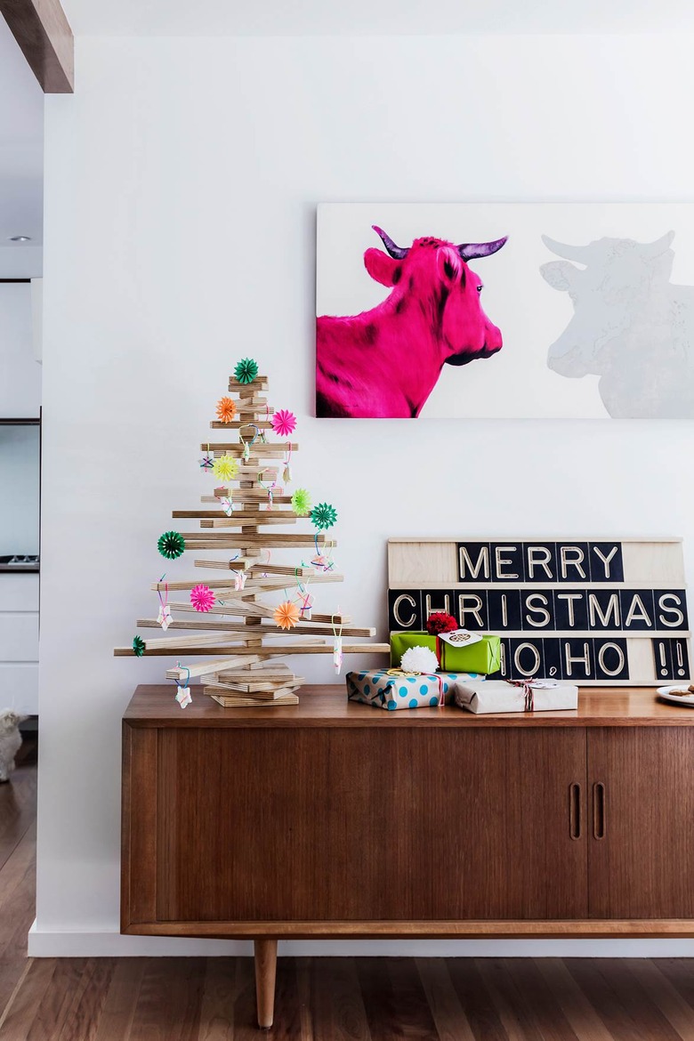 Add dimension and a subtle glow to your abode with this eco-friendly modern Christmas tree idea constructed from plywood and string lights. And bonus: this one is easy to make, even if you don't consider yourself the DIY type.