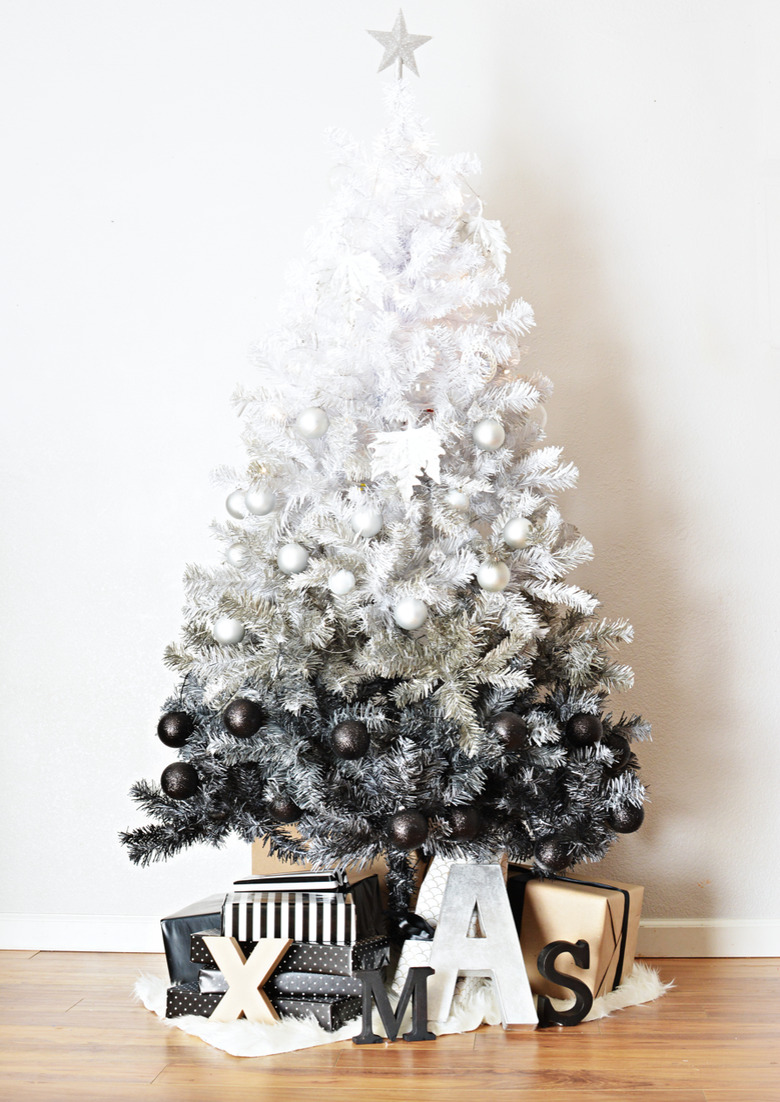 Can a modern Christmas tree idea be equal parts naughty and nice? If it features a black and white ombre color palette with curated ornaments, like this one by Little Inspiration, the answer is yes! Plus, color-coordinated gifts keep the look cohesive.