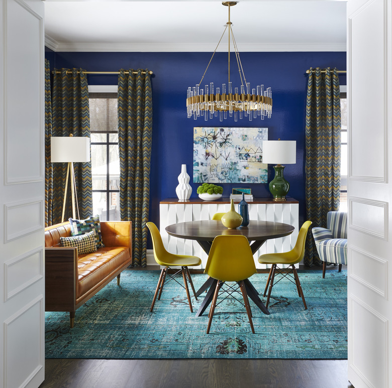In the kitchen, opt for dining furniture in vivid colors. If you have the flexibility to change your countertop or backsplash, choose interesting hues or even a good dose of animal print.