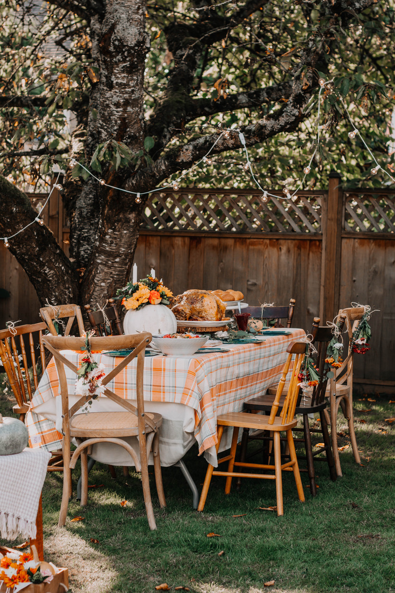 Take advantage of the crisp fall temperatures with an outdoor dinner party à la The Sweet and Simple Kitchen. Add ambiance and functionality with string lights hung from the tree branches for a look that feels both natural and effortlessly beautiful — the hallmark of an autumnal celebration.