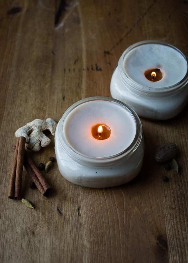 It's not fall without the intoxicating aroma of a candle wafting through your home. These DIY chai-scented beauties by Stephanie of Hello Glow look simple and chic housed in clear canning jars, making them the ideal addition to a stylish vignette. Pair with your favorite coffee table books and a few sentimental mementos to complete the look.