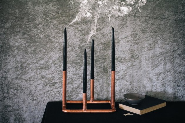 This DIY copper candelabra by Hunker contributor Trisha Sprouse is sure to add a spooky touch to your decor just in time for Halloween. Want a sophisticated vibe that still works with the fall season? Just swap out the tapers for a rich plum shade in place of black.
