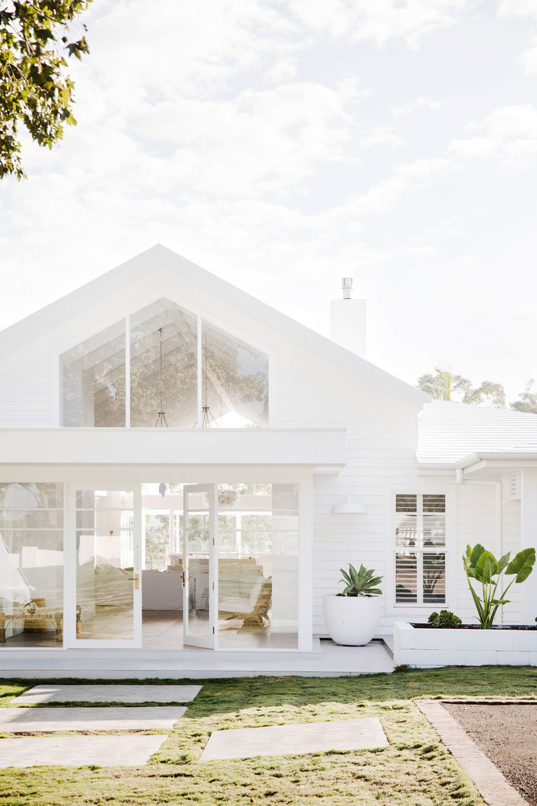 Pulling off a total monochromatic look — we're talking both indoors and out — calls for an open build like this serene beach house by Three Birds Renovations. Strategically placed windows and numerous floor-to-ceiling glass doors offer a peek into the all-white interior, which seamlessly transitions to the home's exterior.
