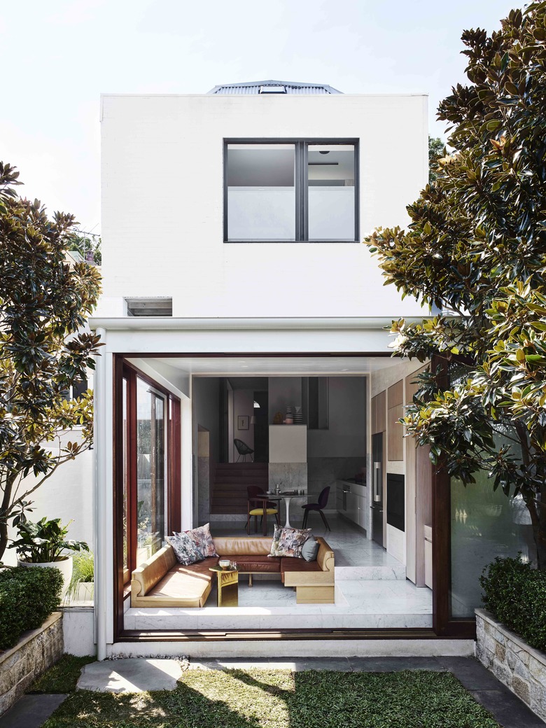 White home exteriors and contemporary builds are a match made in design heaven. The neutral shade softens the linear characteristics of the style, lending an ethereal yet futuristic feel that can't be beaten. Of course, it always helps to have floor-to-ceiling glass doors and windows, too, just like this Bondi Junction house designed by Alexander & Co.