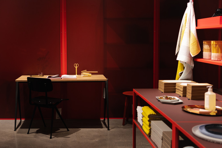 The color red, specifically Caliente, is one of Benjamin Moore's most popular shades. And it's described as an invigorating hue that's "strong, radiant, and full of energy." If you want to bring the trendy pop into your own space, feel free to go all out like this sleek red-on-red workspace. It successfully executes single-tone decorating, and the yellow pops work so well.