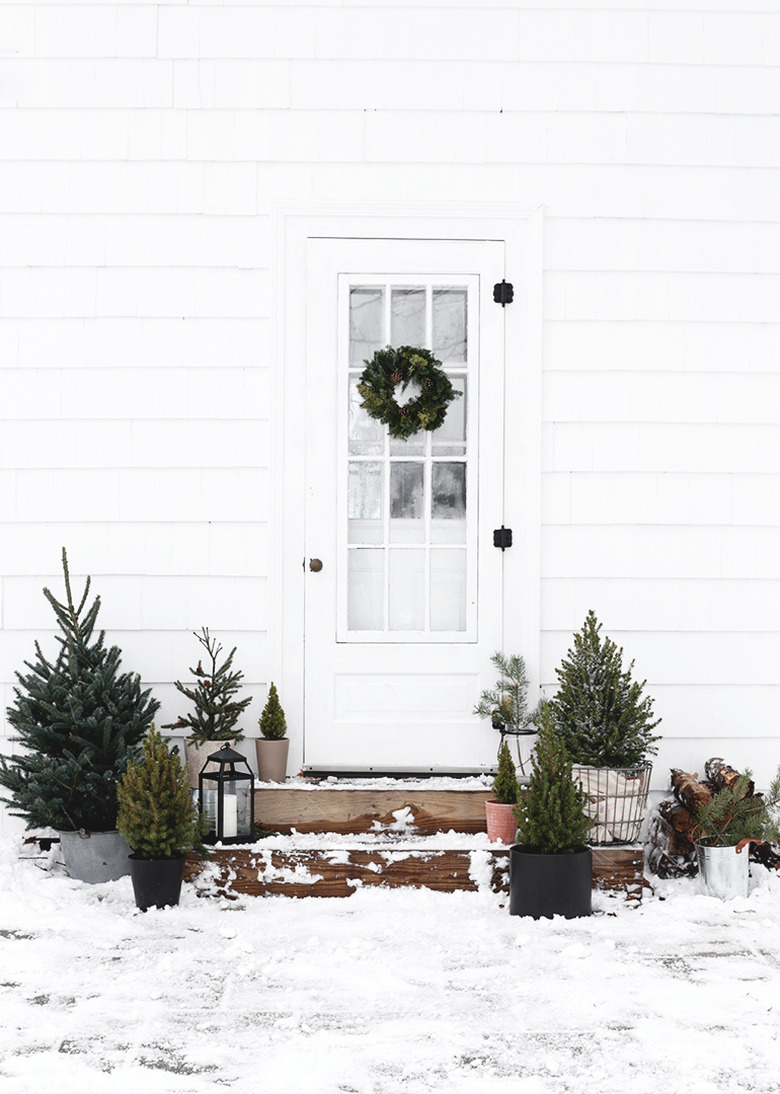 How festive — yet classic and minimalist — is this entry situation by The Merrythought? With one simple wreath on the door and a variety of potted trees along the steps, you can create a timeless look in nearly no time. Consider this proof you can be festive and understated simultaneously.