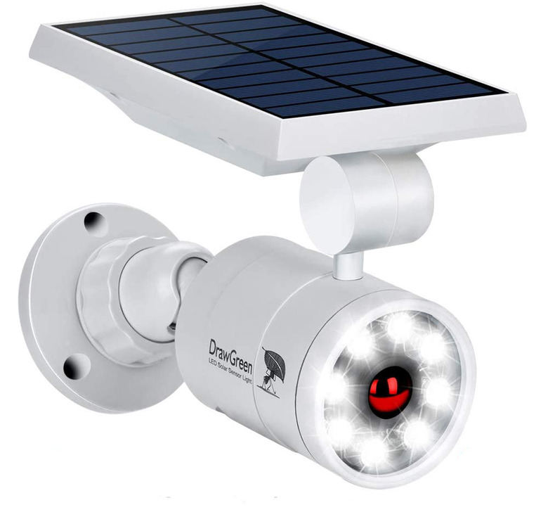 Right next to the Arlo cameras, we installed a pair of these motion-sensor flood lights. We now leave our regular exterior lights on 24/7, as well, but the detective who worked on our case highly recommended installing motion-sensor lights to startle any potential burglars. We picked up this pair of solar-powered lights on Amazon for just $72 total.
