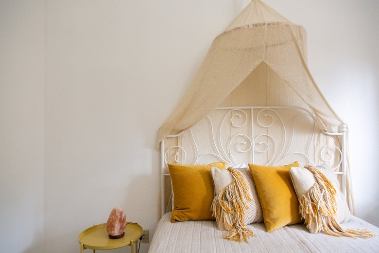 Adding yellow accents is another easy way to interject the shade in small ways rather than making too big of a splash. Try some textiles or daffodil throw cushions in your bedroom and beyond. They'll work perfectly for a desert or rustic vibe.