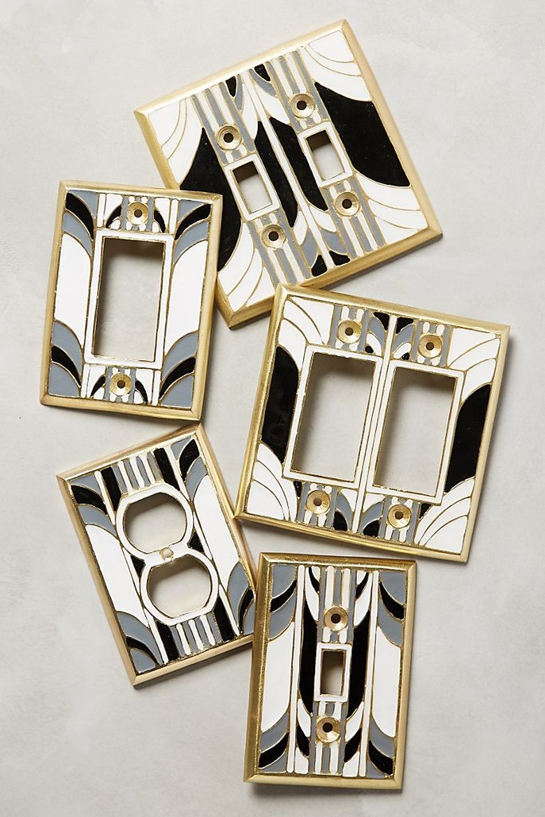 Anthropologie's enameled switch plates are a fun take on the art deco-inspired trends that we've been seeing lately. The line of switch plates is available for outlets, toggle light switches, and on/off paddle switches (those larger, rectangular switches). The plates feature a geometric, symmetrical design with arched forms and a black, gray, and white color palette.