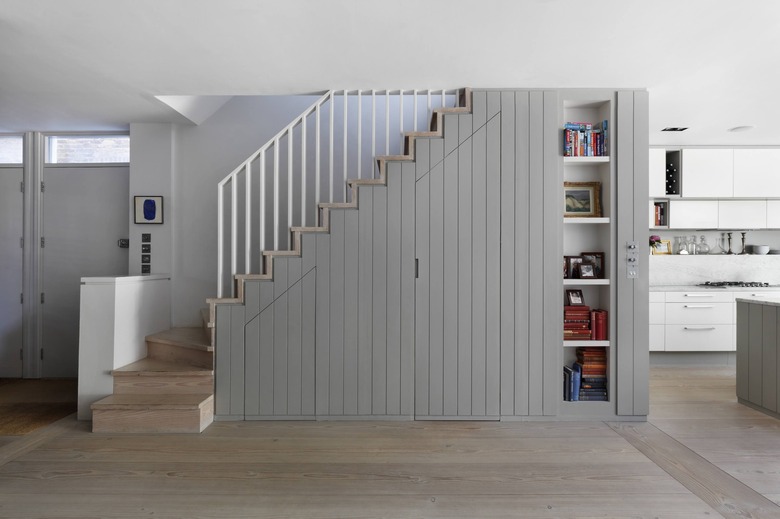 Maybe you'd prefer all your storage solutions to seamlessly fade into the background. In that case, we suggest covering it with paneling to make your under-the-stairs storage look like part of the wall. That's what the team at De Rosee Sa Architects did — we love their modern take on under the stairs storage.