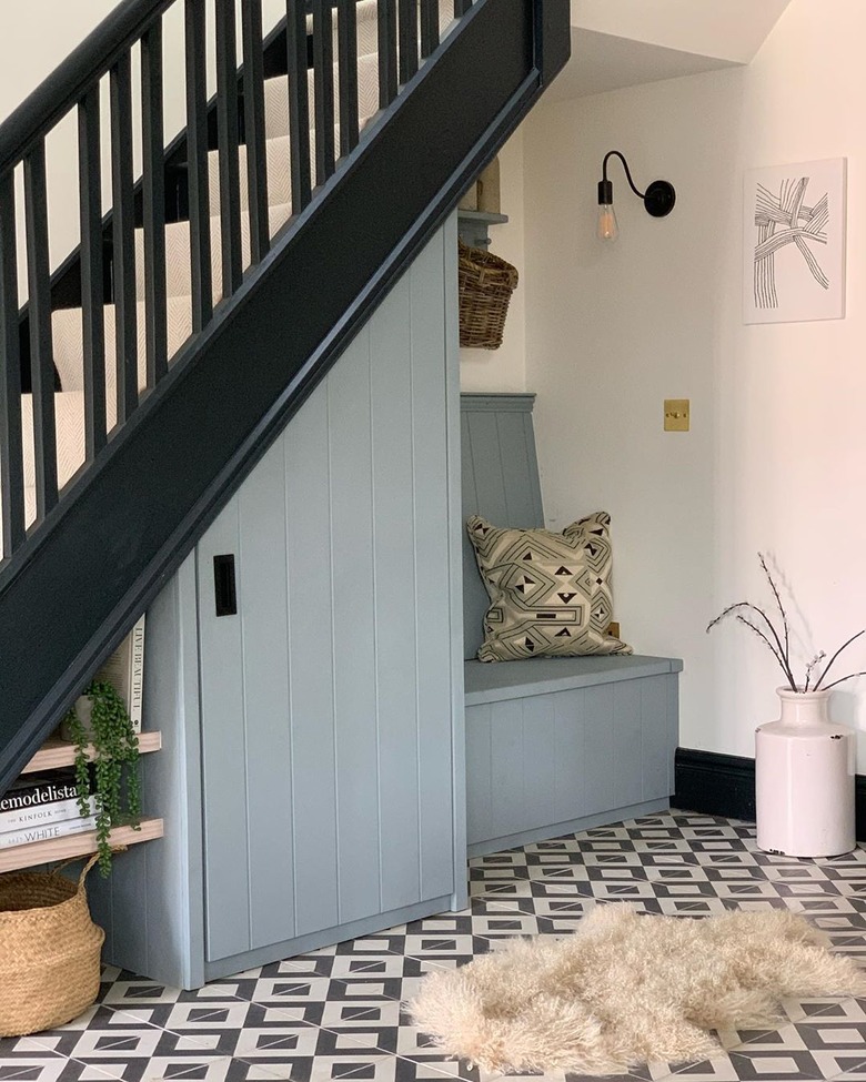 From pantry essentials to coats and board games, there will always be something that you can store under the stairs, so it makes perfect sense to build out a cupboard. You can put your DIY chops to the test and construct one, or you can buy one instead (we're thinking a flea market find would be ideal). Katy of Place Forty Eight painted her cupboard the same shade of blue as the accompanying bench, and the result is cohesive, eye-pleasing, and practical.