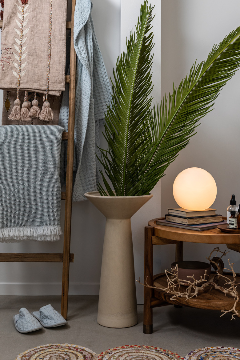 When it comes to bedtime, soft lighting will help lull you into a deep sleep. Try adding other other sensory helpers like essential oils, diffusers, or even plants to help purify the air.