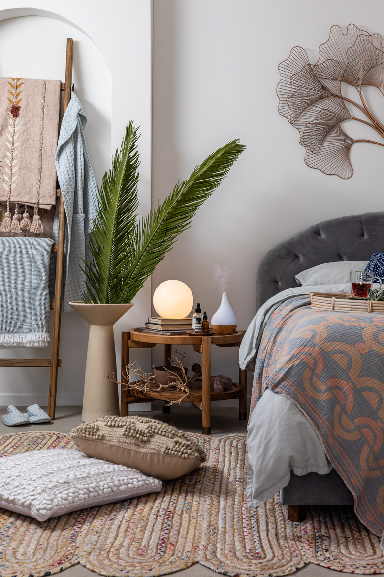 The more texture you can bring in, the better. Look for boho-inspired throw pillows with textured surfaces and rugs made of natural fibers to make your bedroom feel truly grounded.