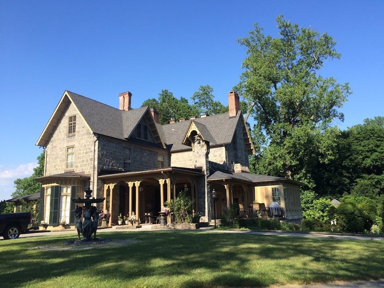 The earliest of the Victorian styles, Gothic revival brought the Middle Ages back to life in the 1800s. These homes, with their steeply gabled roofs and pointed-arch windows, resemble medieval cathedrals. They feature many decorative elements like parapets, spires, carved vergeboards hanging down from the gables, and wraparound porches, often balanced by earthy color palettes. Gothic revival houses are most common in New England.