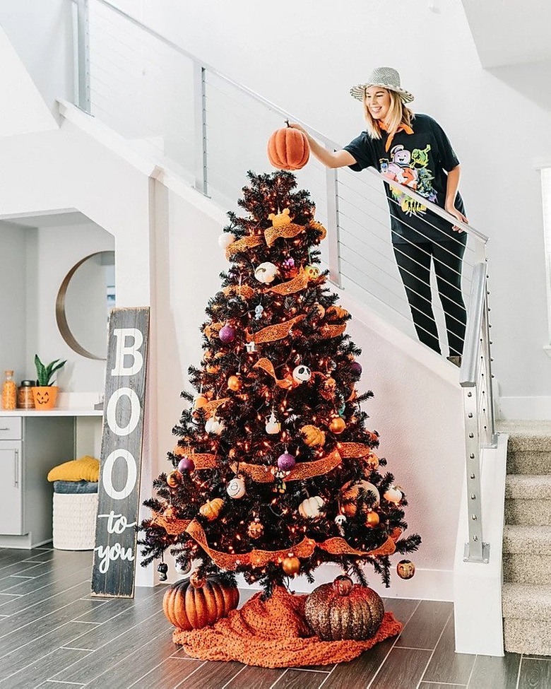 Sure, Christmas trees come in all shapes and sizes. But why not forgo the usual evergreen look and keep it fun (and just a little spooky) with a Halloween-themed tree like Emily of Oh Em Yeah? Hers actually has black faux pine needles that are festive but still quite chic.