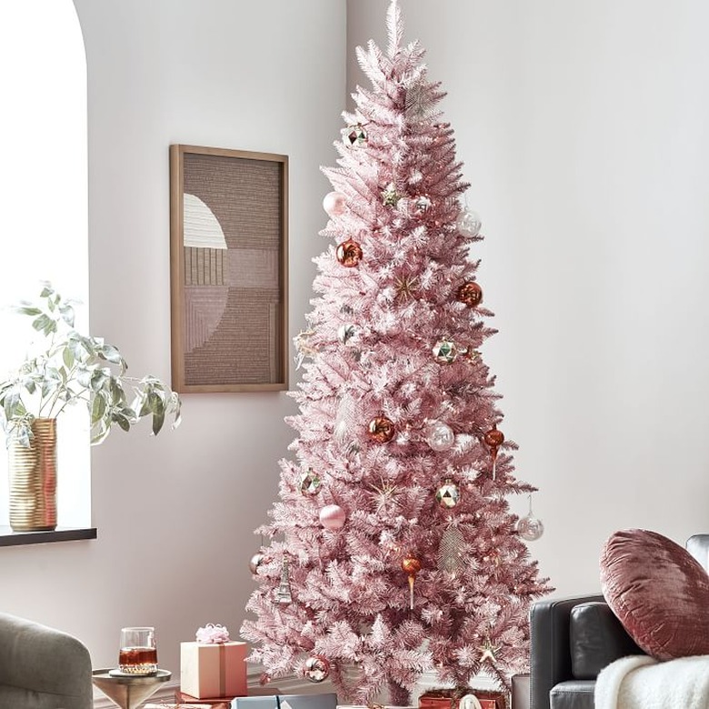 Sure you can get real trees flocked in any number of colors, but faux options come in super chic shades, too. If you like to keep those rose-colored glasses on when it comes to the holidays, do your thing with a pink tree like this one from West Elm. Keep your ornaments in the same shade or add some silver and gold for a little more glam.