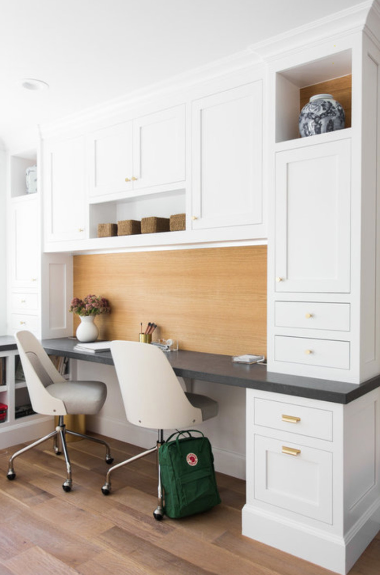 Find a wall in a living room or bedroom, and create a work nook by installing cabinets. Everyone, and we do mean everyone, needs more storage whether it be for business, files, or bedding. We like how Studio McGee added a little light wood paneling to the space for some warmth. You could even hang a corkboard for a similar look.