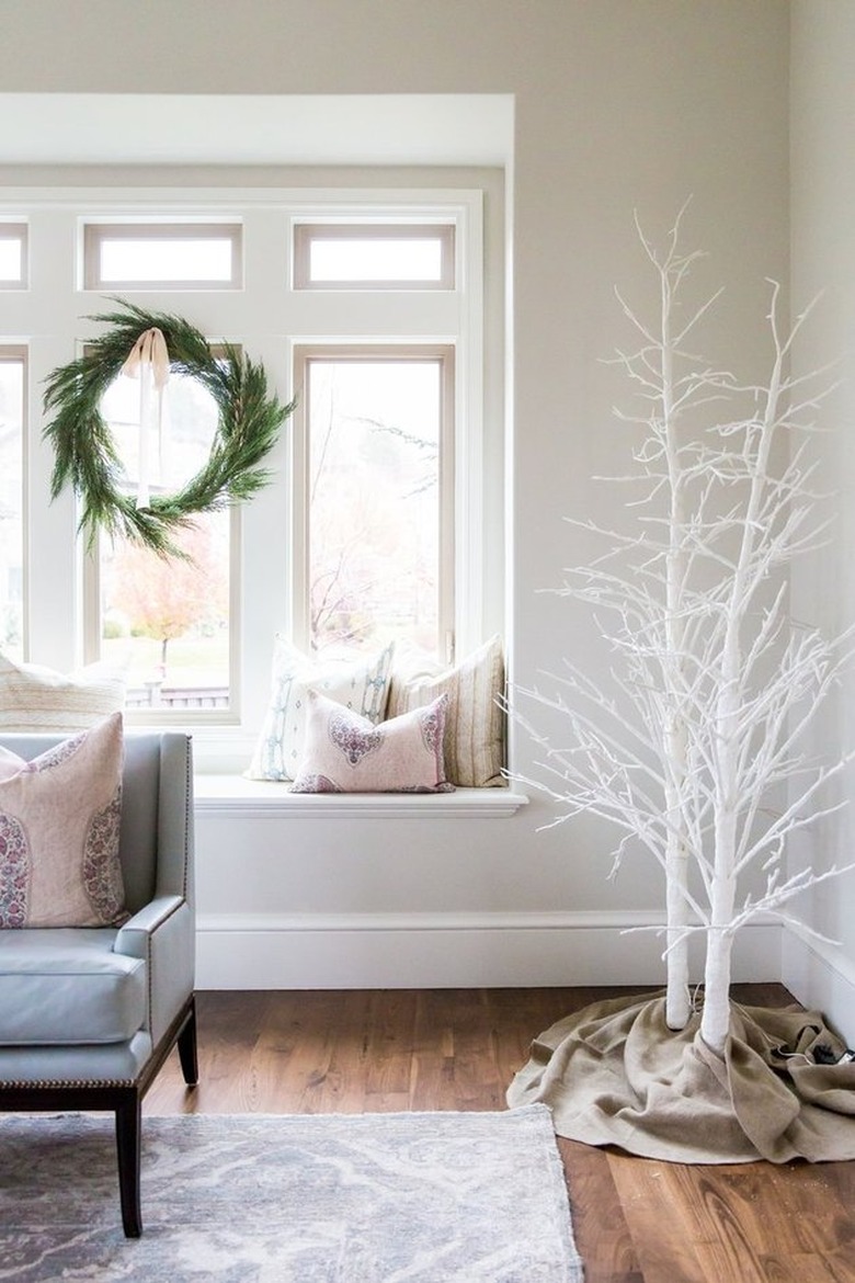 Even simple branches sprayed with white paint can create a super sophisticated white Christmas tree in your space. This look from Studio McGee coordinates perfectly with the modern farmhouse living room and adds a touch of nature in a surprisingly stylish way.