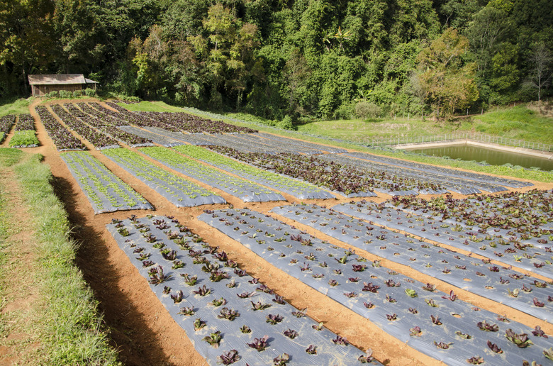 Landscape fabric can be used in a number of different ways. For ornamental gardens and plantings, the fabric is laid on top of the prepared soil and is held in place with landscape fabric pins or staples. The gardener cuts holes in the fabric to insert the plants and then covers the fabric with a few inches of mulch. The fabric stays in place from year to year, and many people consider it a permanent solution for a weed problem, although it does deteriorate over time.