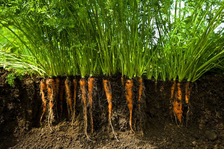 Carrots are best grown from seed. Carrot seeds take a long time to germinate — as much as two or three weeks — and the ground has to be kept moist during that time. It's a good idea to cover the seed beds with a thin mulch layer to help retain moisture. Because carrot seeds take so long to sprout, some gardeners sow radish seeds along with them to keep track of where they are. Radishes sprout quickly and are ready to harvest by the time the carrot shoots break ground.