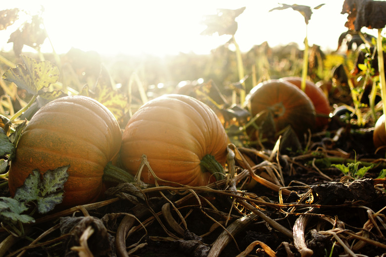 Pumpkins do best in fertile, well-draining soil that isn't too compacted. Select a section of the garden that is in full sun. Since most pumpkin patch areas tend to be on the large side, preparing soil can be a bit labor-intensive. Loosen the soil and work in a mixture of compost and fertilizer, according to soil-test results, to make sure there are plenty of nutrients. Many gardeners also like to mound the soil where the seeds or seedlings will be planted as a way to help heat the soil in the beginning of the growth period in spring. This works especially well for colder climates, but it also helps with drainage.