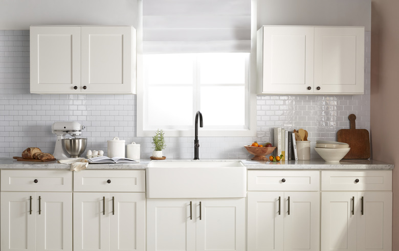 While some farmhouse kitchen walls showcase shiplap, many others feature a backsplash made of subway tile. It's a timeless look. If you want to try this for your space, consider using a darker grout to make it stand out against the white tile in the best of ways. However, if you're updating on a budget or live in a rental, try a peel and stick backsplash for the easiest of installs.